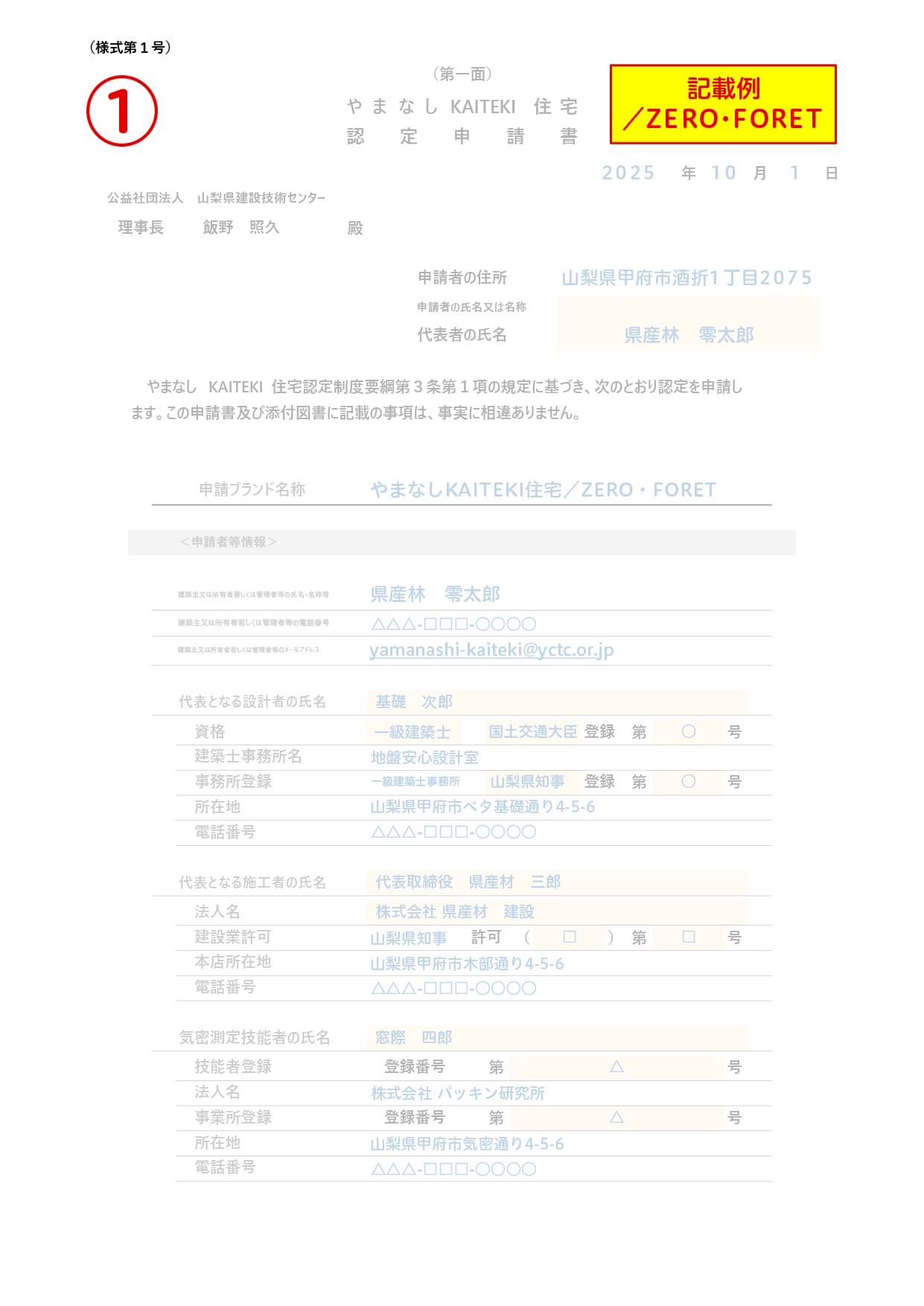 ①認定申請書(様式1)(記載例)