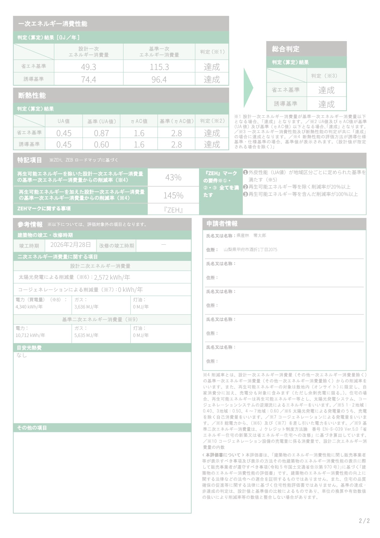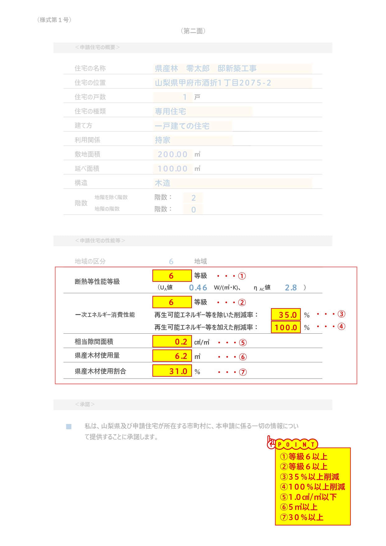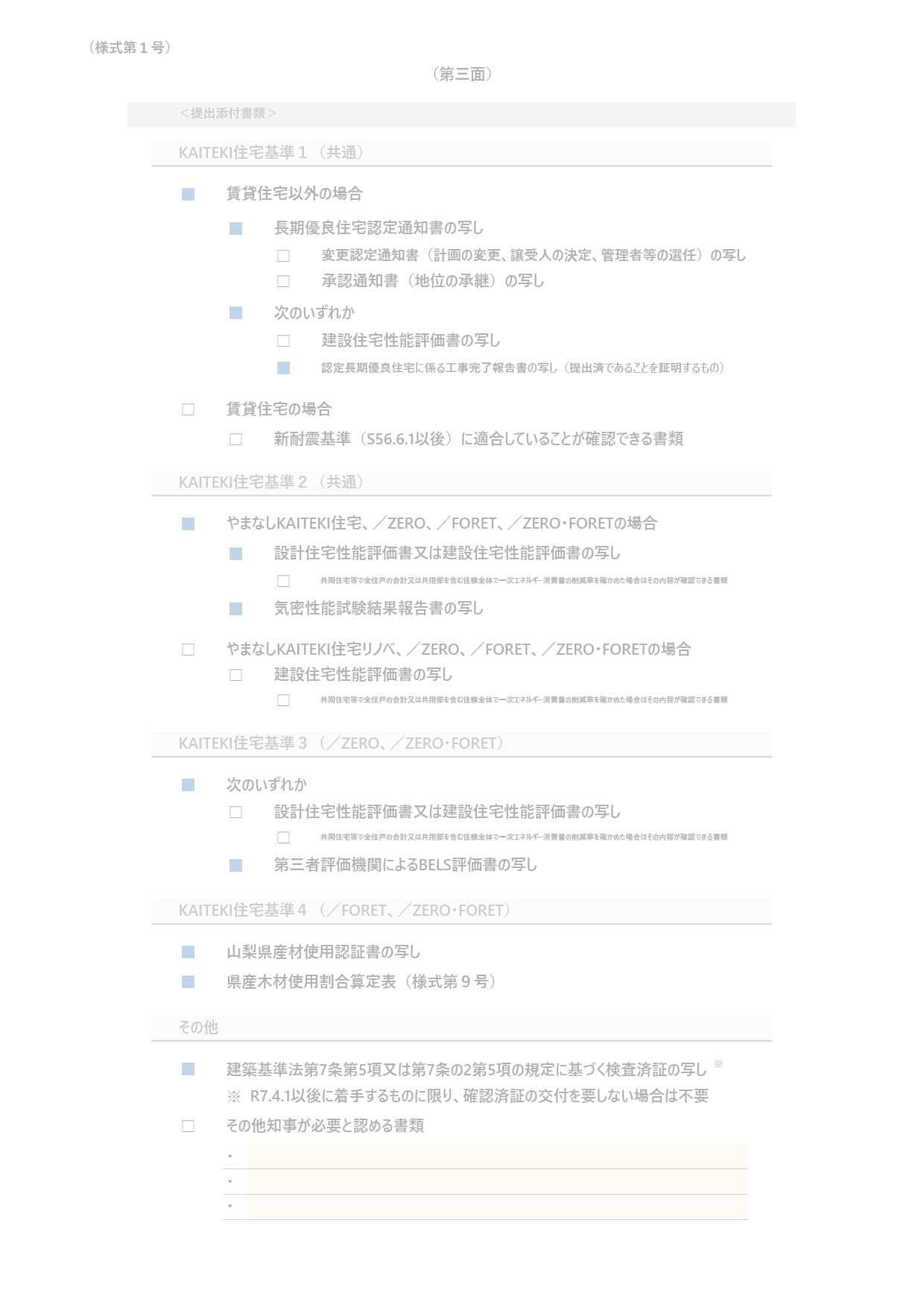 参考例:やまなしKAITEKI住宅(新築持家住宅)の認定申請をする場合