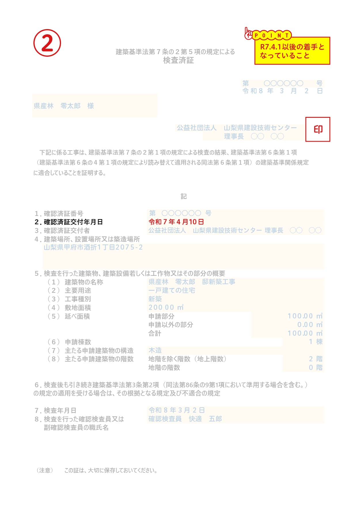 ②検査済証(参考例)