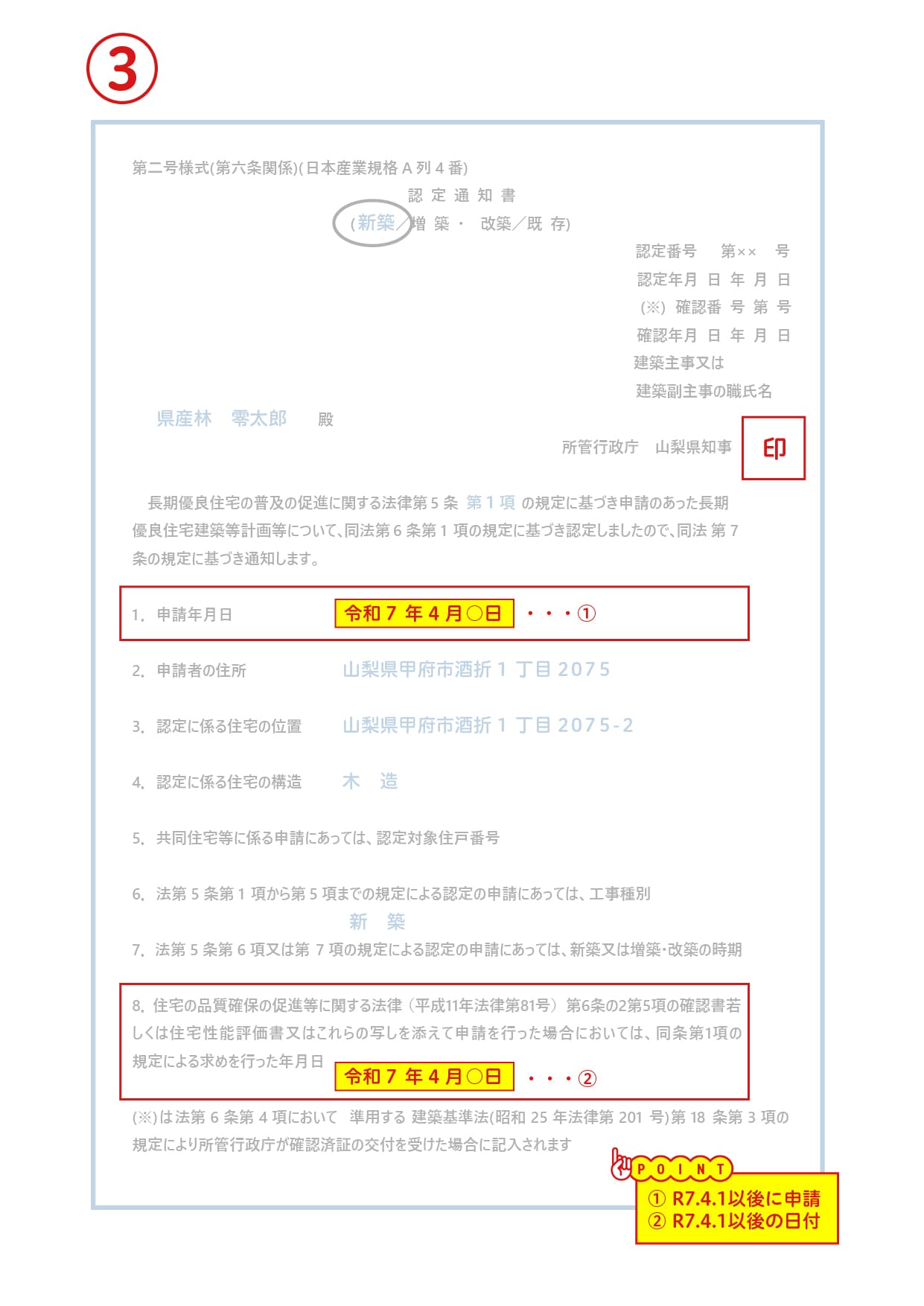 ③長期優良住宅認定通知書(参考例)
