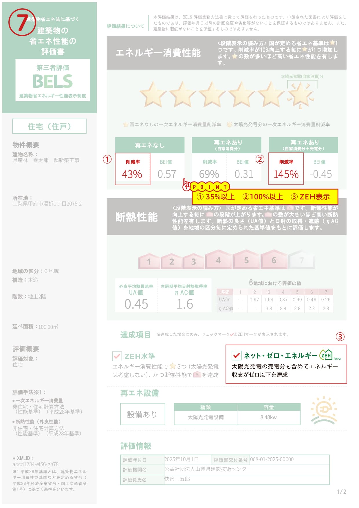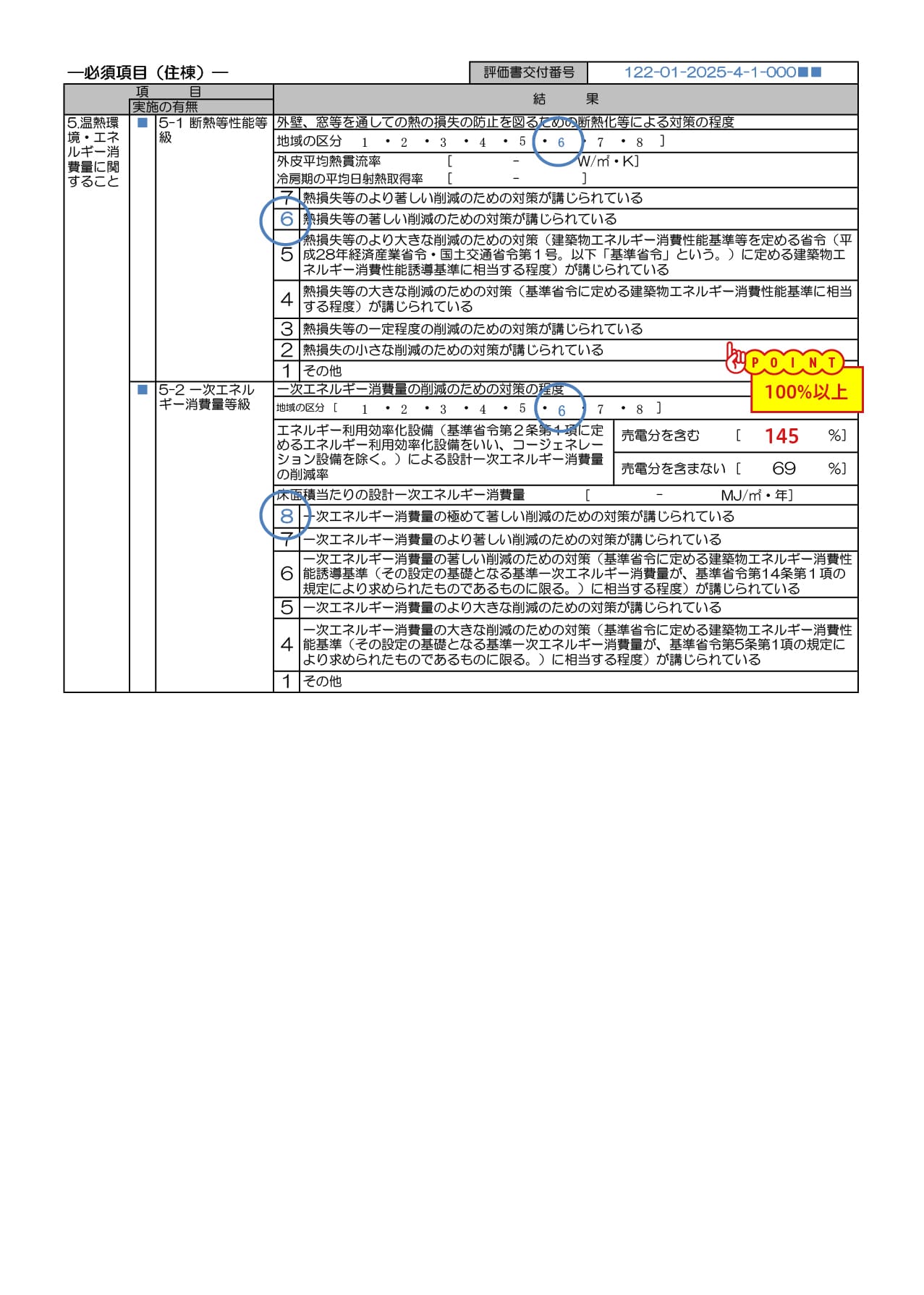⑦一次エネルギー消費量の削減率が確認できる書類(BELS評価書の場合の参考例)