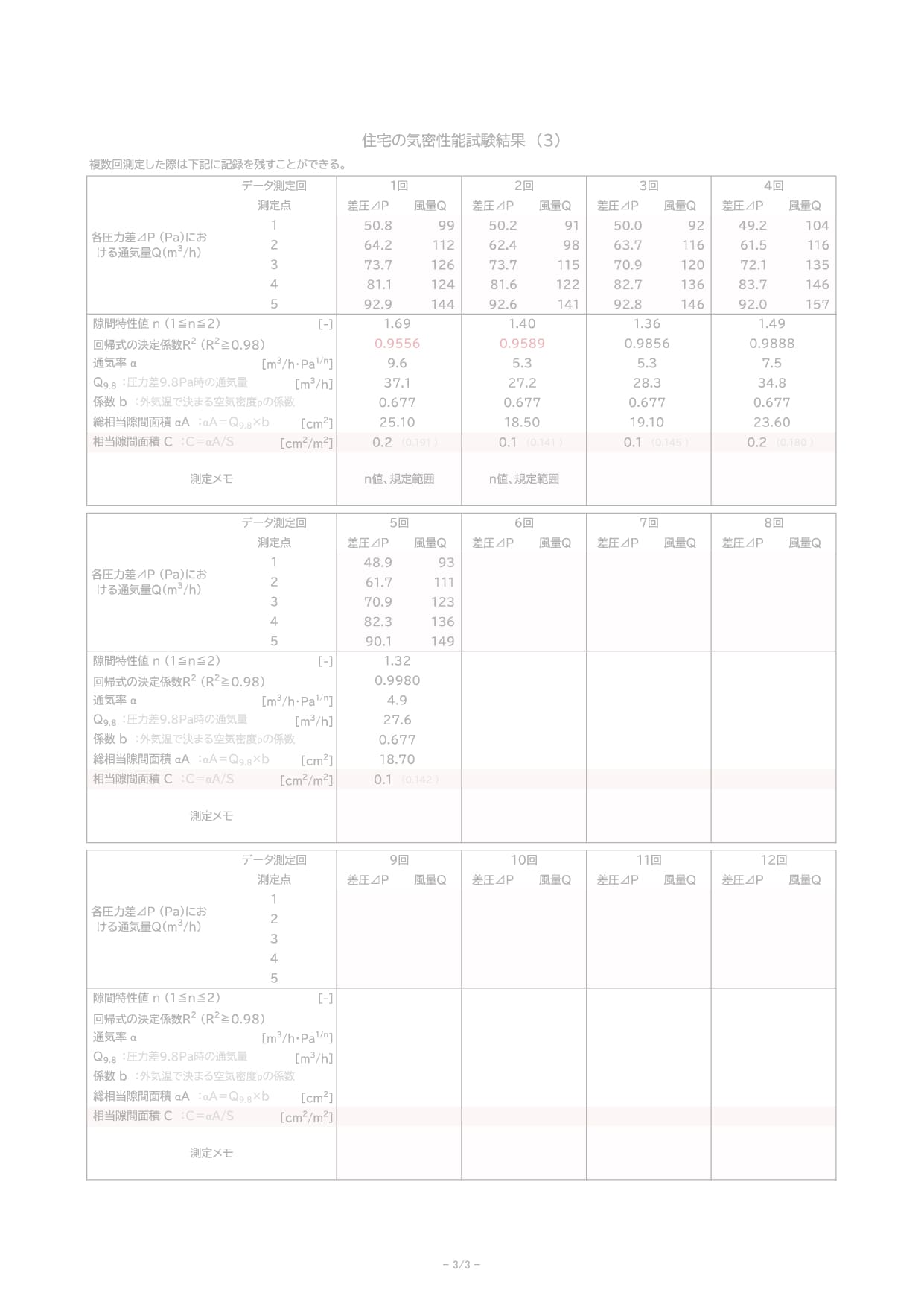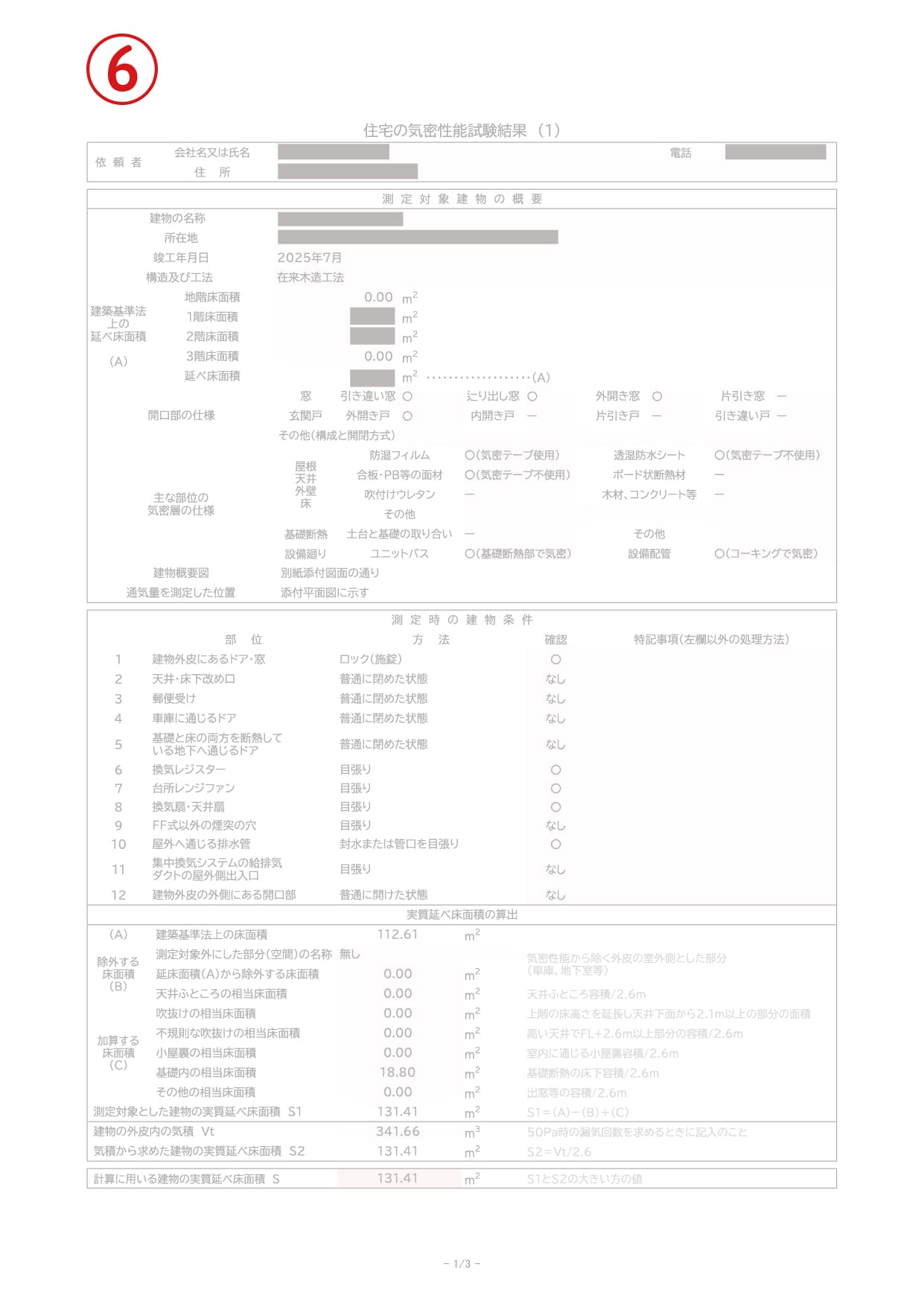 ⑥気密性能試験結果報告書(サンプル)