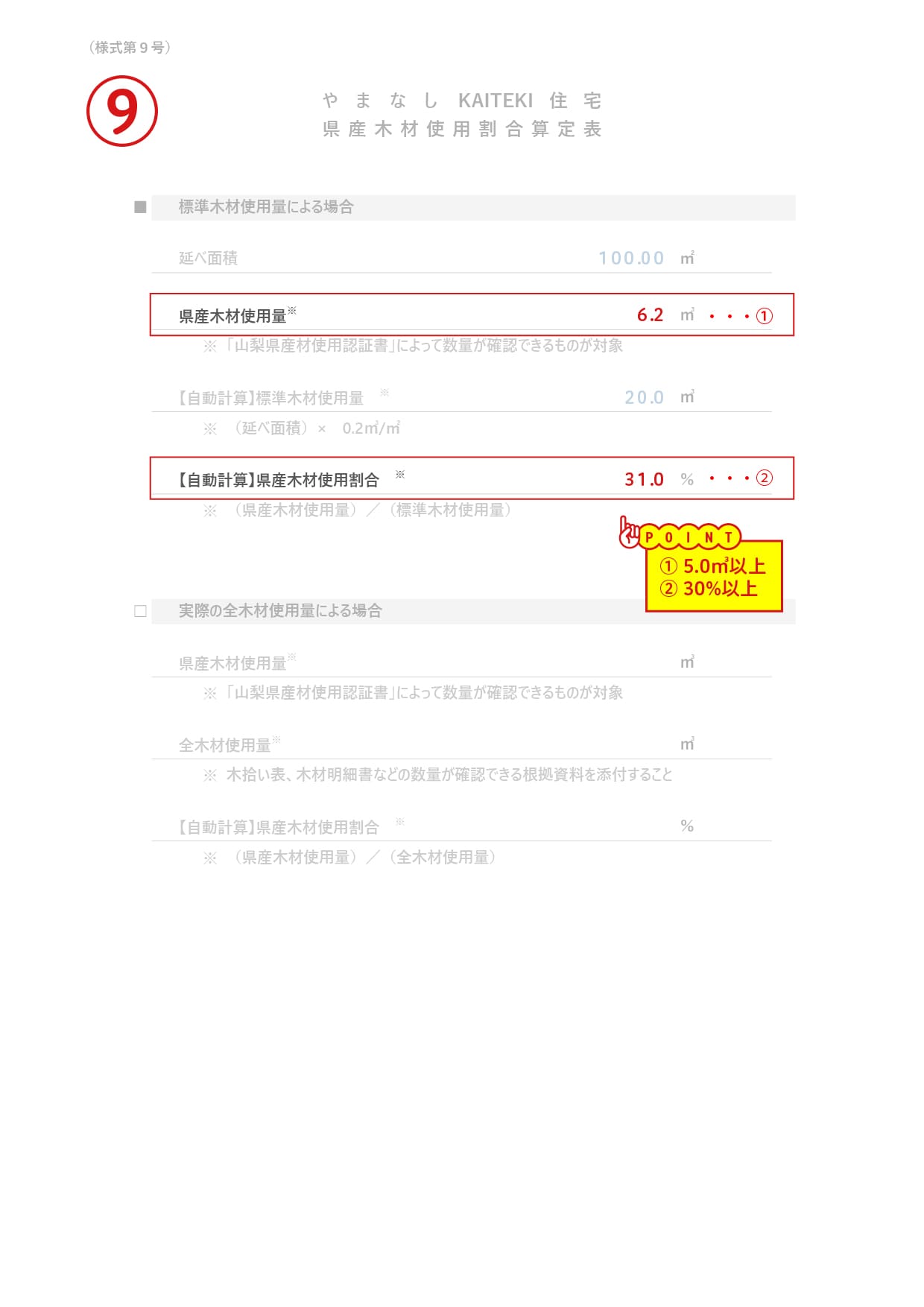 ⑨県産木材使用割合算定表