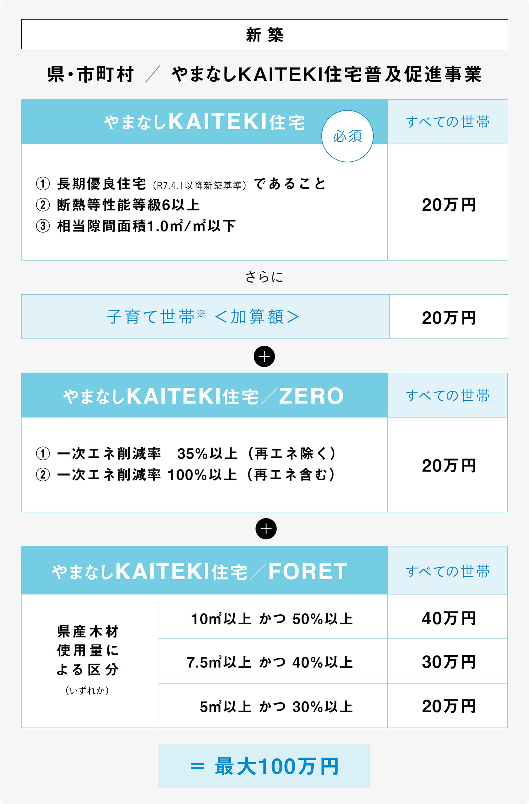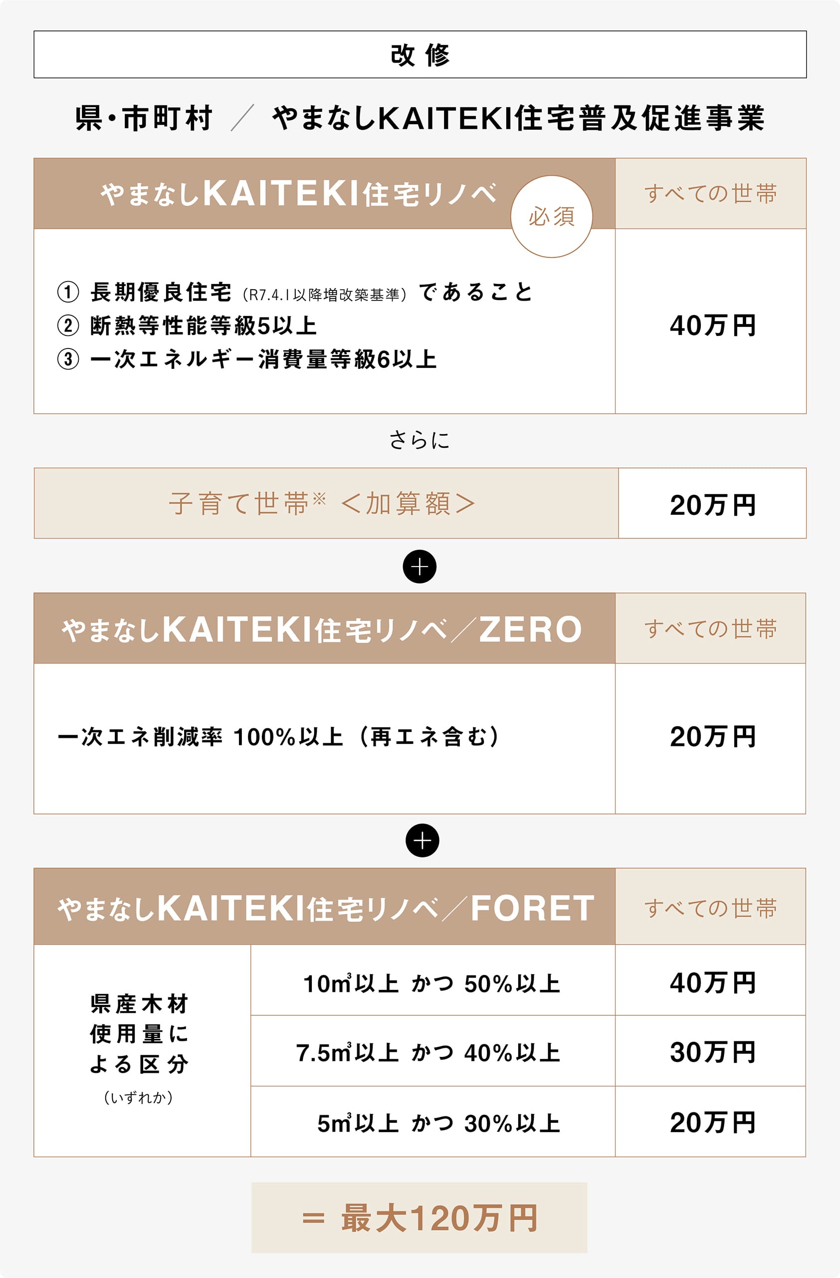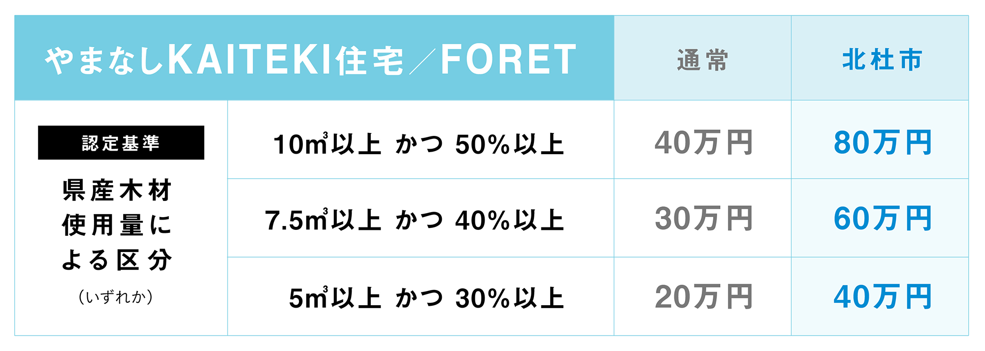 ※ 北杜市は『やまなし KAITEKI 住宅/ FORET』の補助金額が他市町村と異なります。 詳しくはこちら