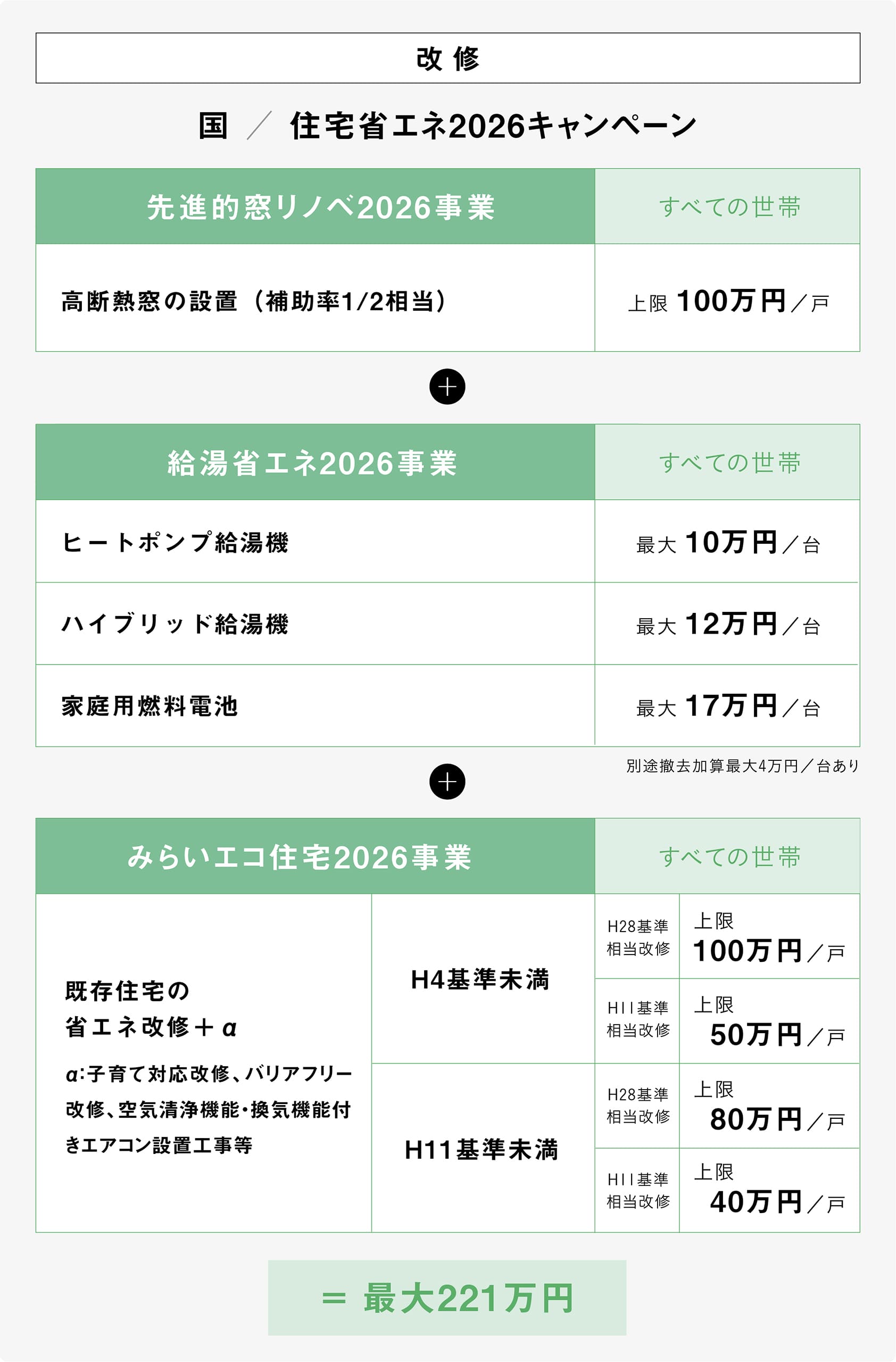 ※ 市町村によっては、さらに併用可能な補助金が設けられている場合があります。