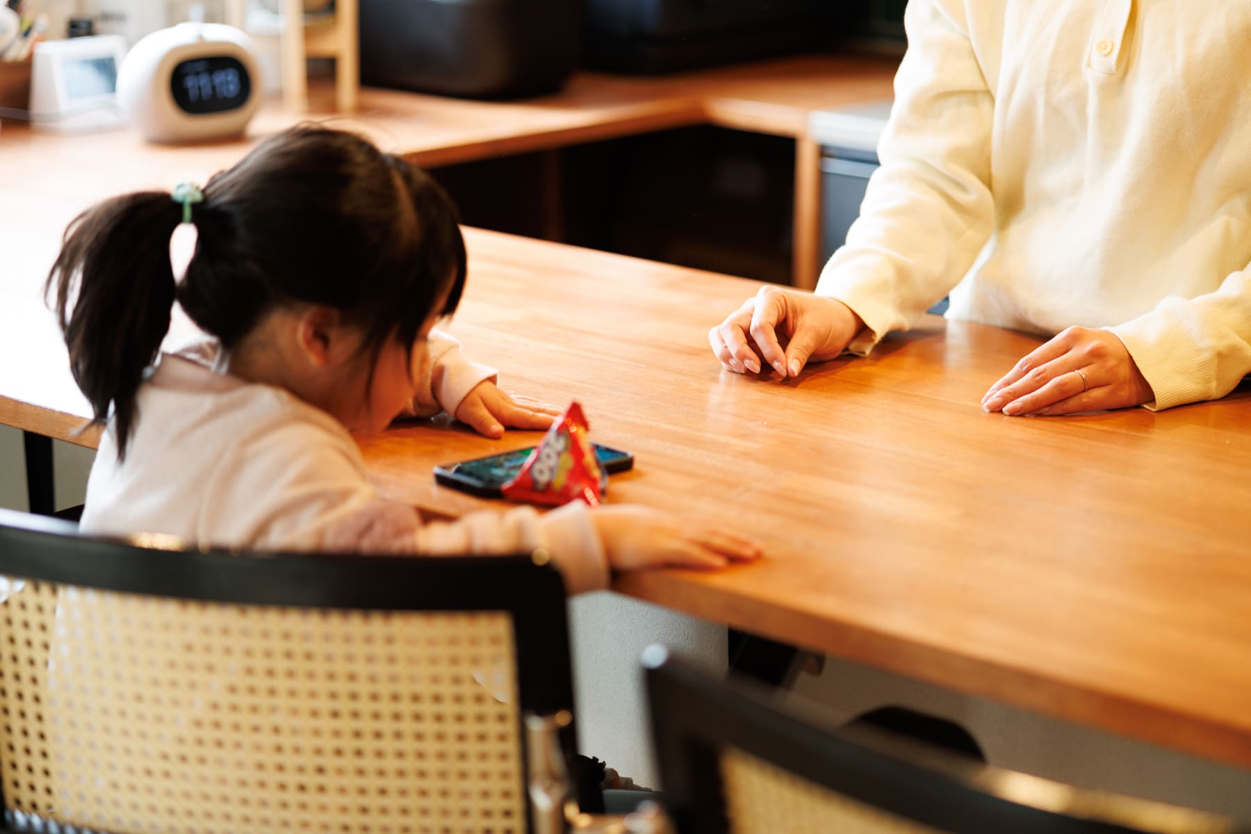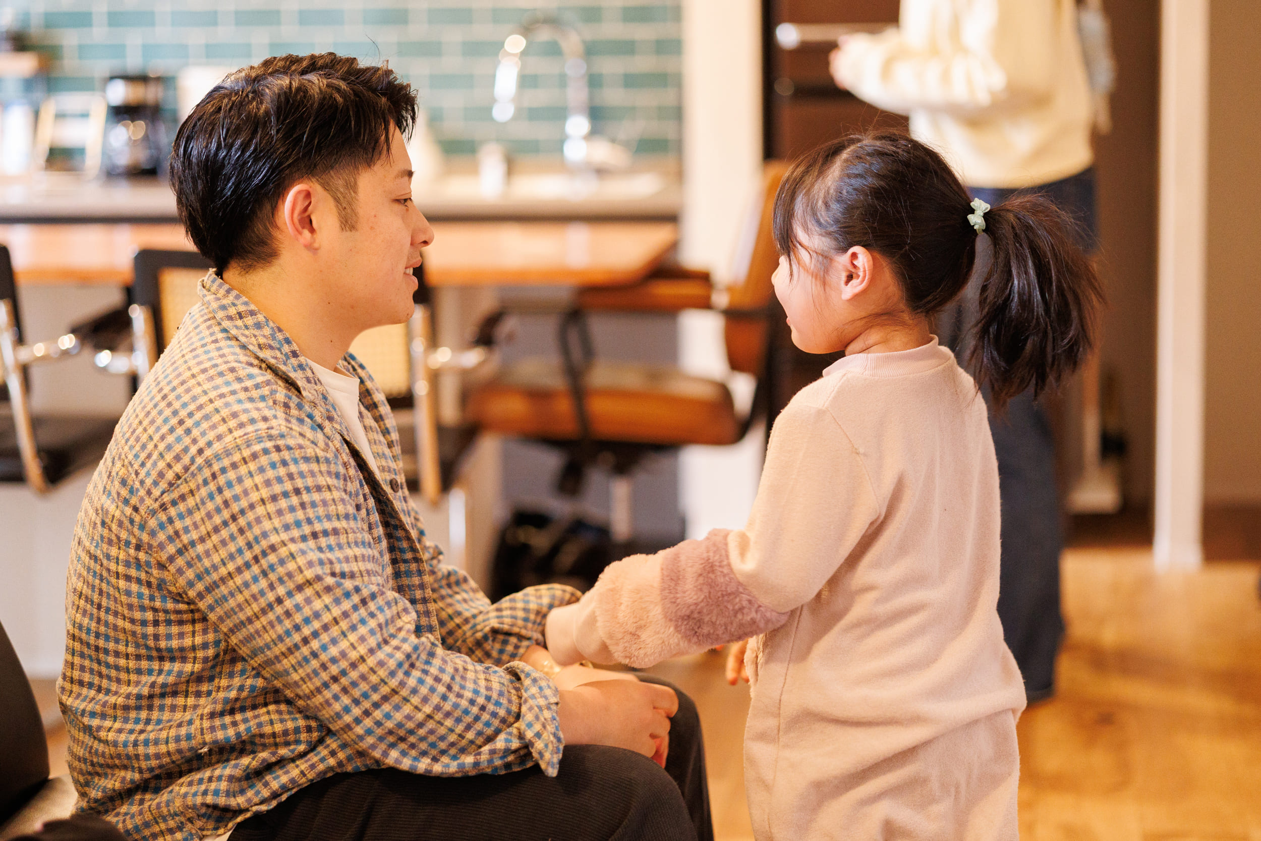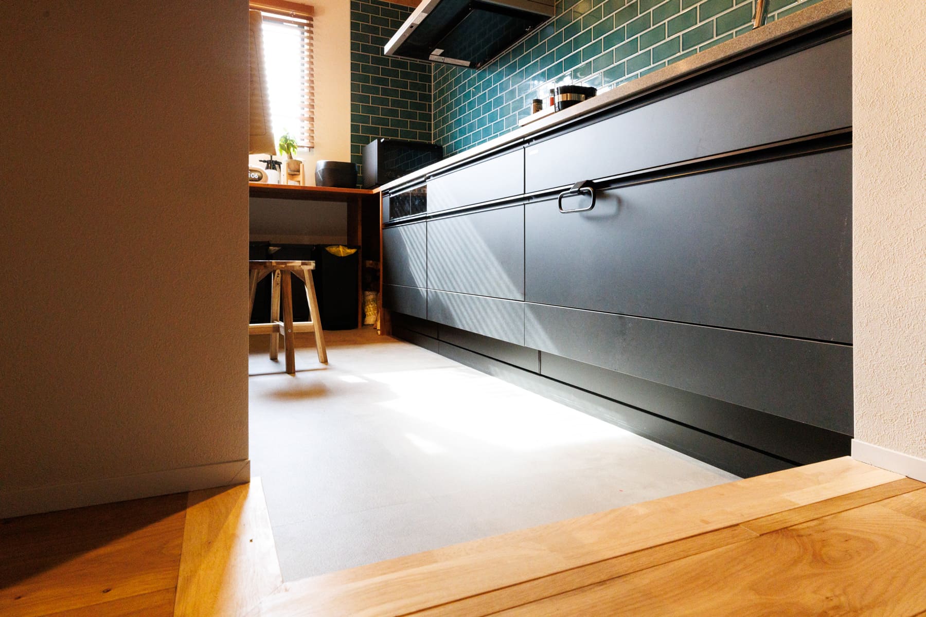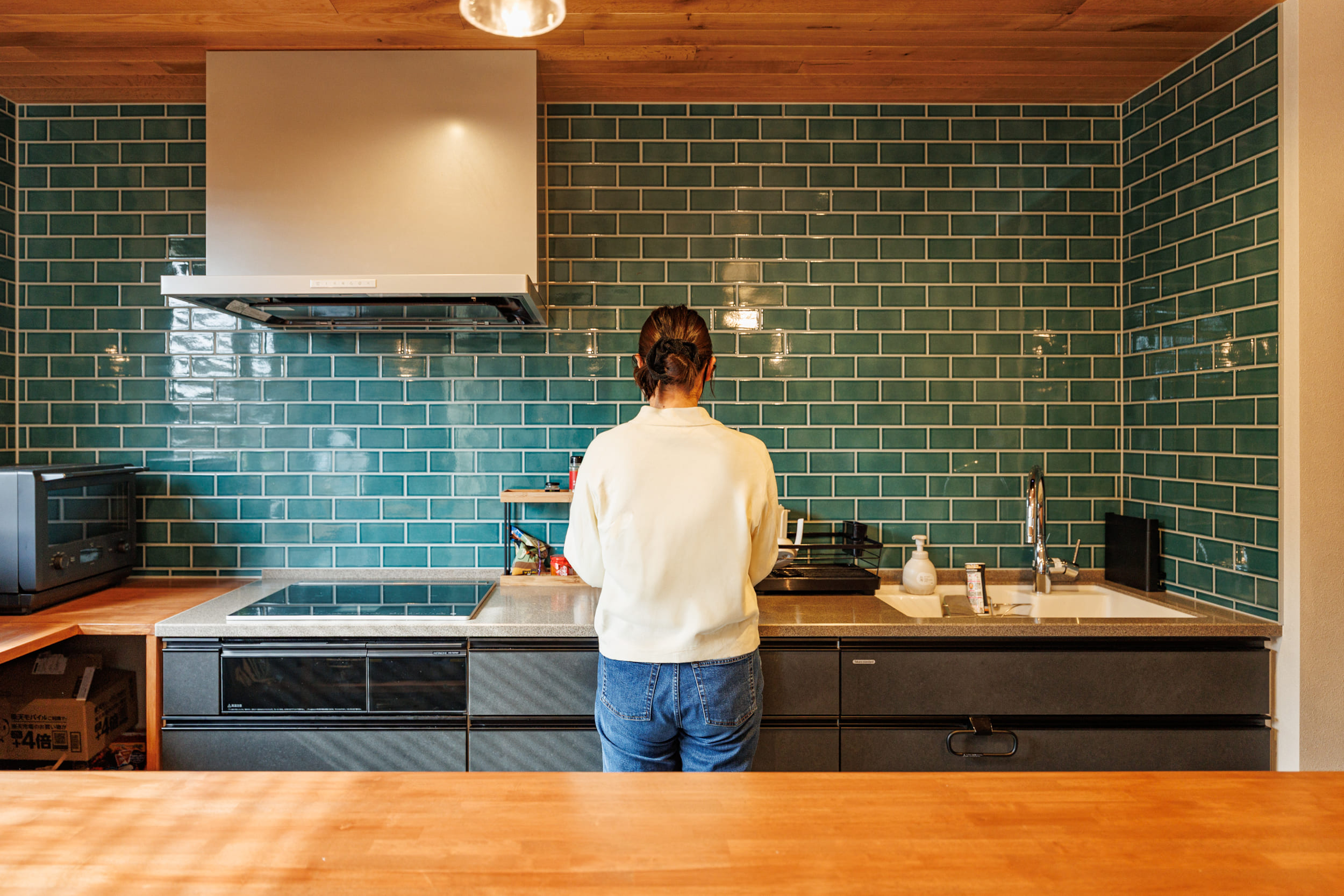 :私はキッチン周りですね。一段下げたダウンキッチンにしたことで、カウンターに座っている子どもたちと目線が近くなりました。今は料理をしながら塗り絵をする姿などを見守っていますが、将来ここで宿題をするようになっても、しっかり向き合いながら家事が進められるので、この形にして本当に良かったです。子どもたちが寝静まった後、バーのような雰囲気で友人たちと集まって、お酒を楽しんだりできる場所としても活用しています。