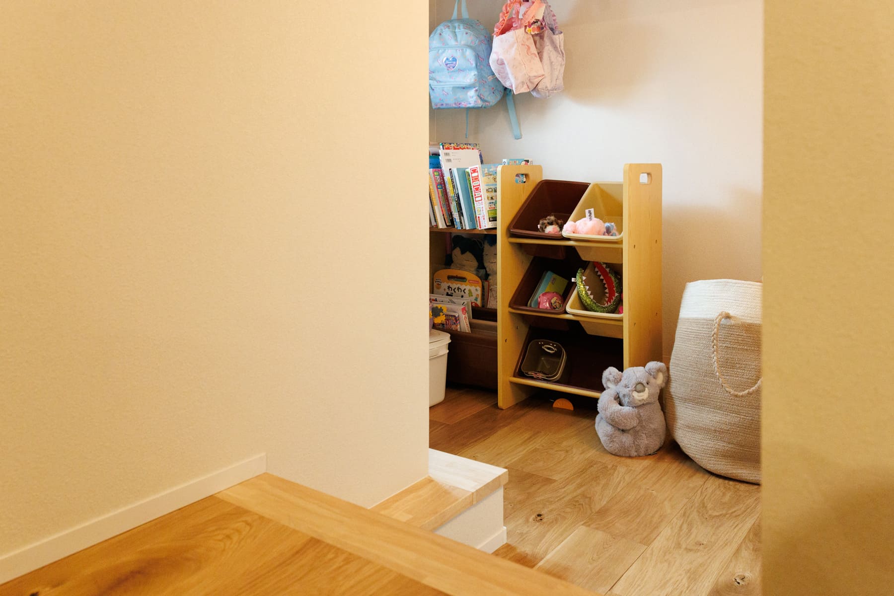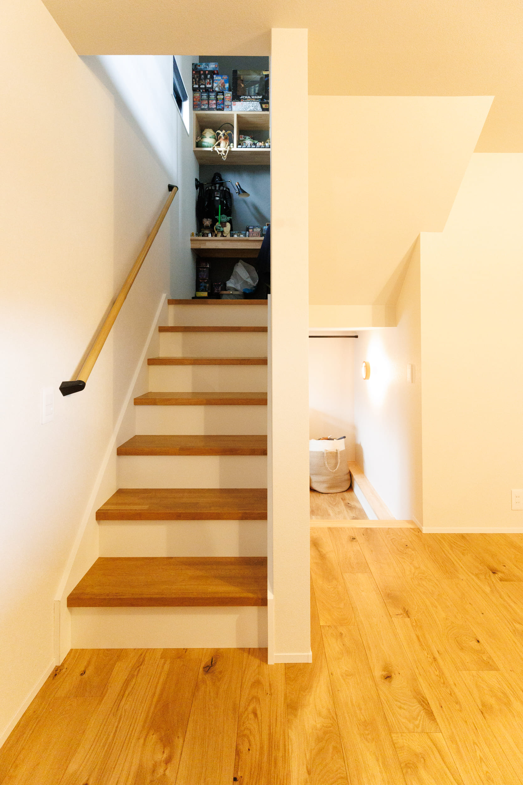 :僕は中二階と階段下のスペースです。学生時代に中二階のある家を見て以来、ずっと憧れていたんです。秘密基地のような隠れ家感が好きなので、中二階は趣味を楽しむスペースに。階段下は、今は子どもたちの遊び場ですが、将来はワンちゃんのスペースにしようかなど、これからの変化を楽しみに計画しています。