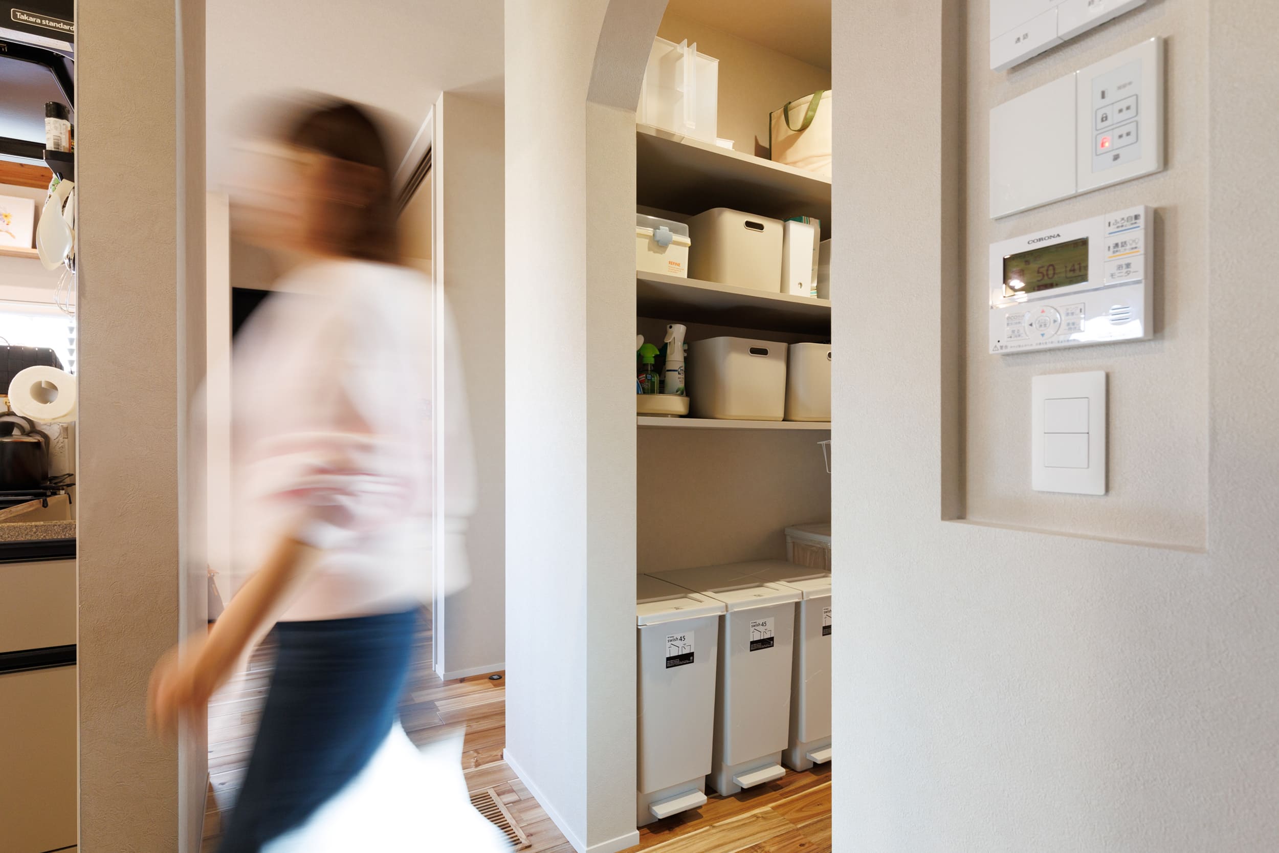 :収納については、夫婦で意見が分かれましたね。僕はとにかくたくさん収納が欲しい派だったんですが、例えば、妻は「通路にまで収納があると通りにくい」と。
